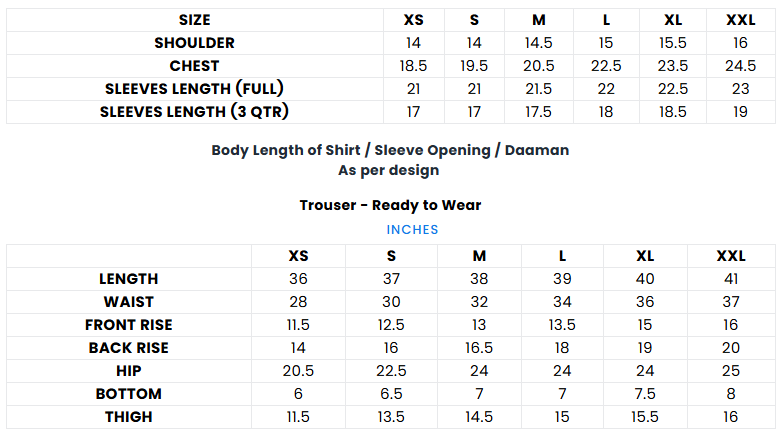 The actual product & colors may vary from the images shown depending on the device you are using to view the product or due to the photographic lighting. Any additional fabric, patches, or embellishments included with the product are mentioned in the product description. Please note that the measurement may vary a little from the one's mentioned.
