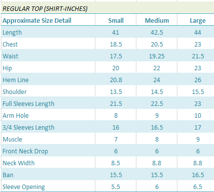 The actual product & colors may vary from the images shown depending on the device you are using to view the product or due to the photographic lighting. Any additional fabric, patches, or embellishments included with the product are mentioned in the product description. Please note that the measurement may vary a little from the one's mentioned.