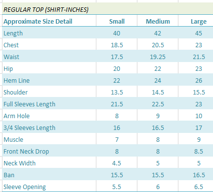 The actual product & colors may vary from the images shown depending on the device you are using to view the product or due to the photographic lighting. Any additional fabric, patches, or embellishments included with the product are mentioned in the product description. Please note that the measurement may vary a little from the one's mentioned.