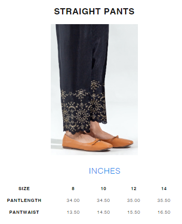 Elevate your style with the Brand Beechtree Straight Pants at Tarz-e-Pakistan. Crafted from raw silk, these pants feature gold and ivory embroidery with scallop edging detail on the hem. Perfect for a sophisticated look. Shop top-quality fashion from Beechtree at Tarz-e-Pakistan.